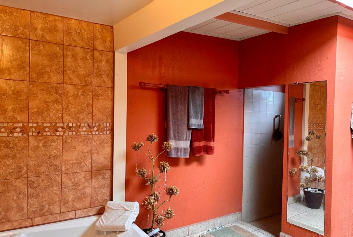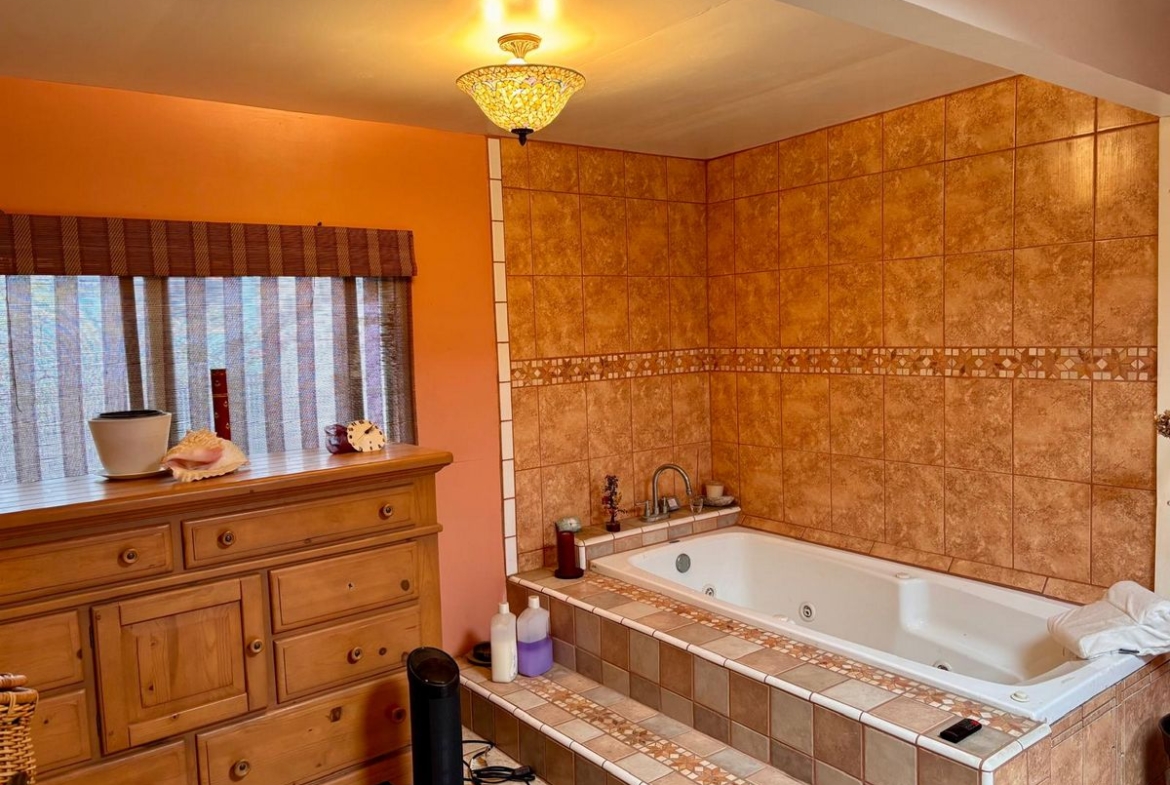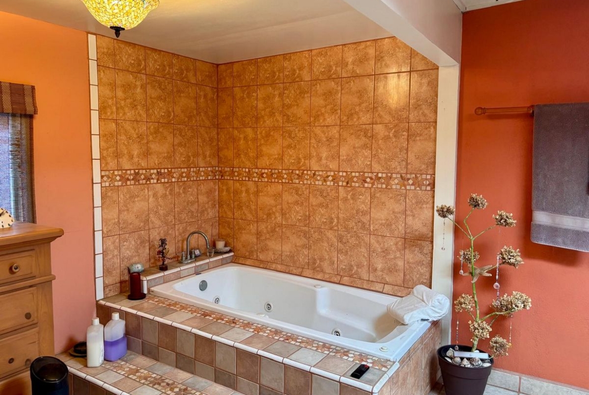 1.5 baños, incluyendo un baño tipo spa con tina de jacuzzi empotrada de gran tamaño