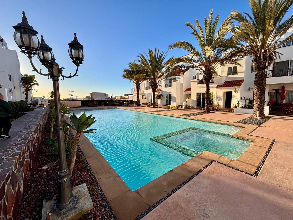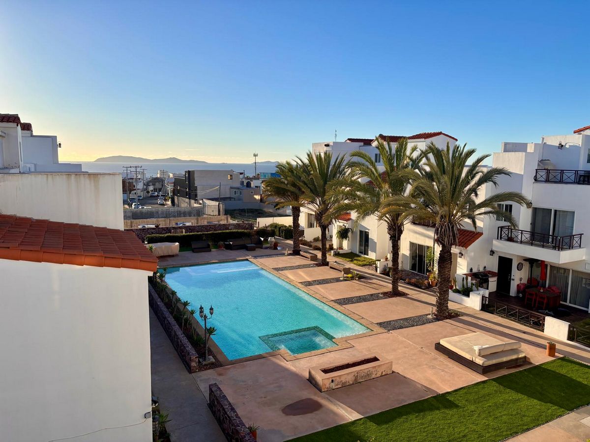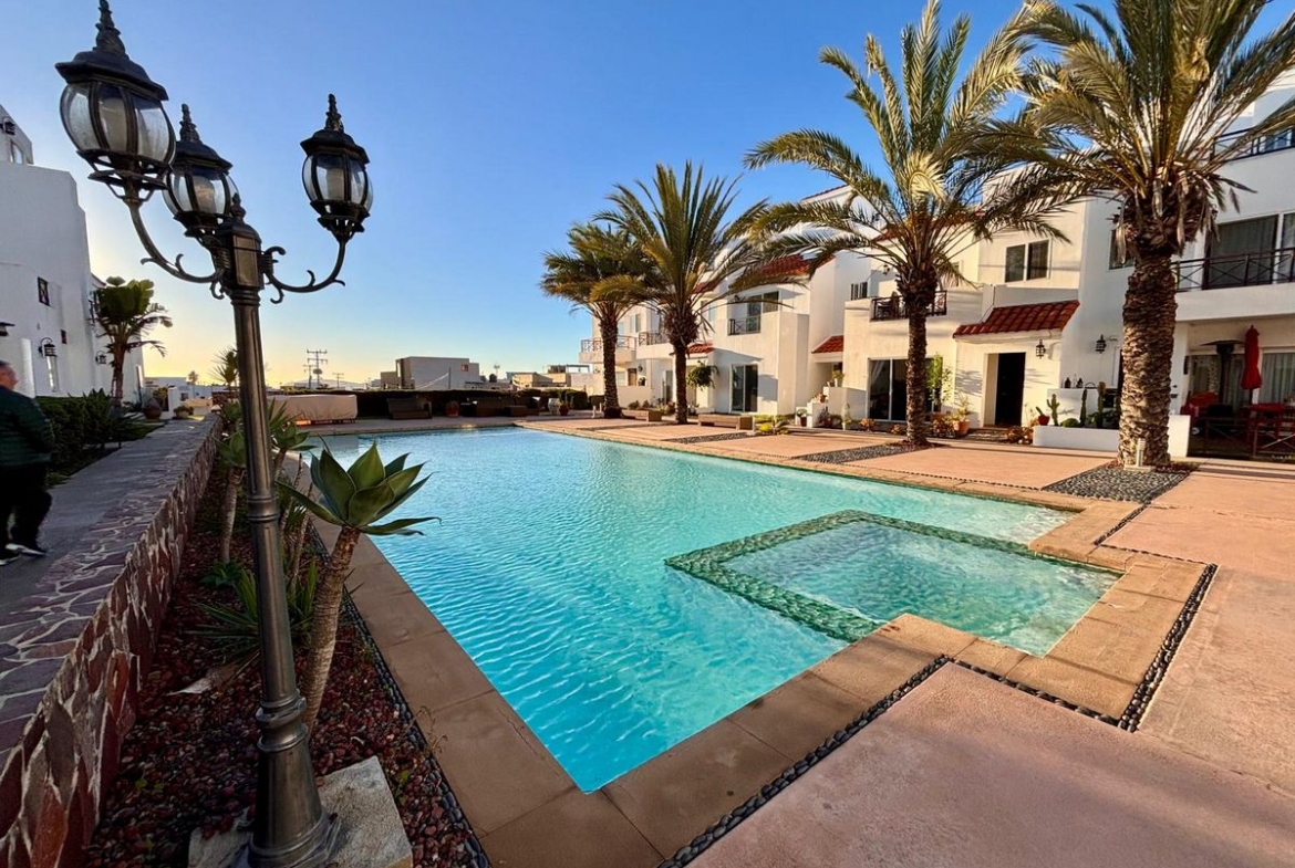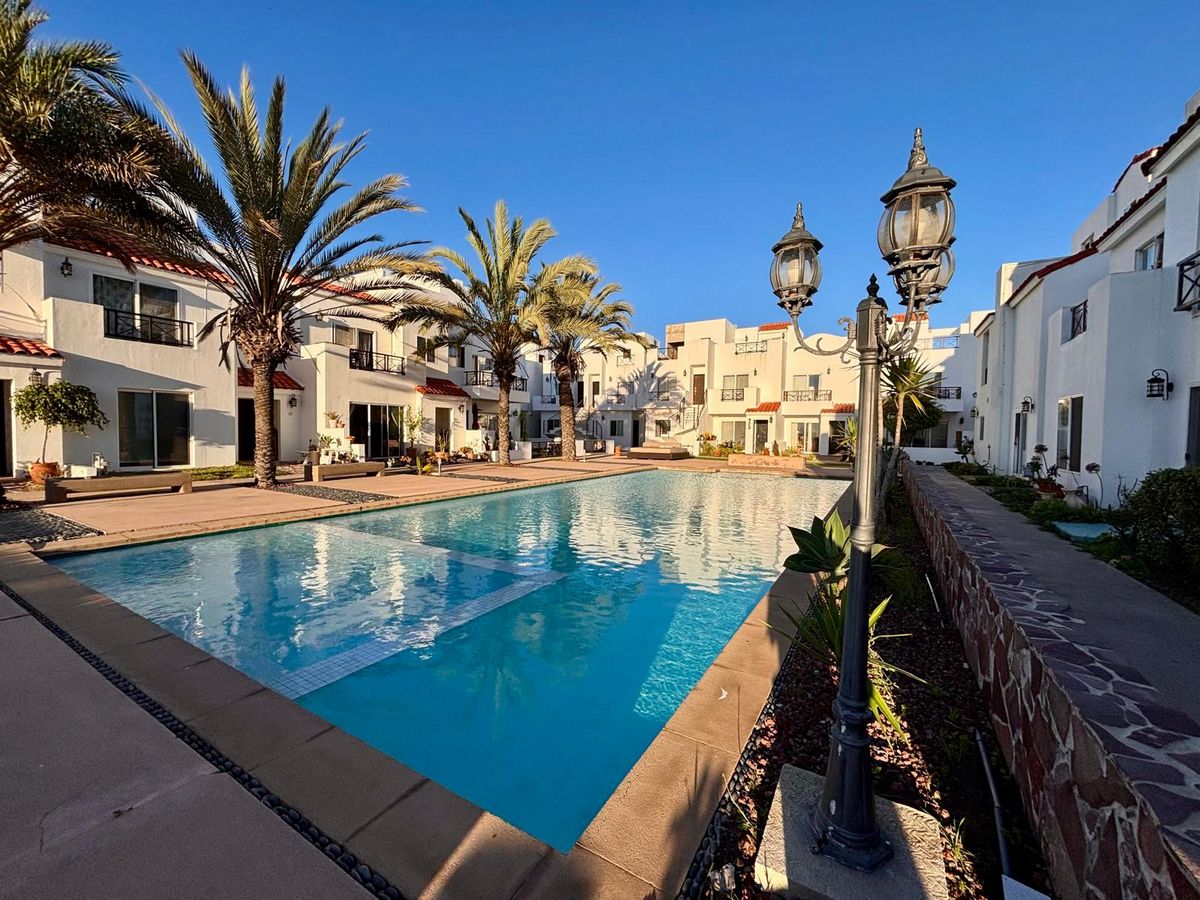 - Hermosa área de piscina comunitaria con paisajismo, palmeras y arquitectura de estilo mediterráneo